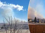 Wildfires are pictured sweeping across the plains north of Denver, around Boulder