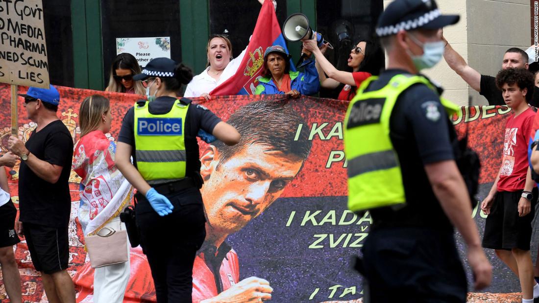 Some were from Serbian cultural groups, singing and waving the Balkan country’s flag, who saw Djokovic’s detention as a great injustice against one of the world’s biggest sports stars.