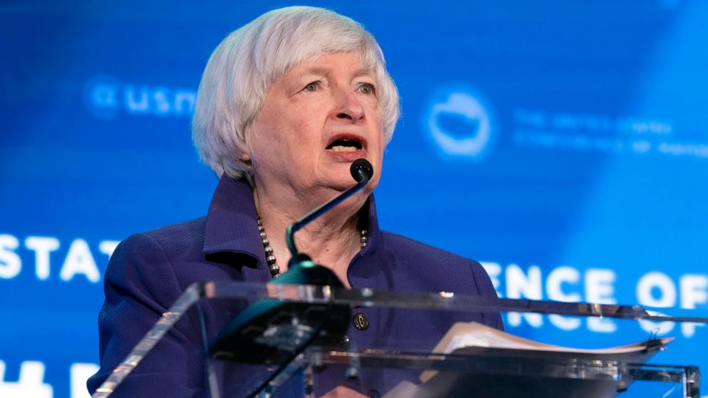 Yellen said she was confident that a surge in coronavirus cases caused by the highly transmissible omicron variant “will not derail what has been one of the strongest periods of economic growth in a century.”