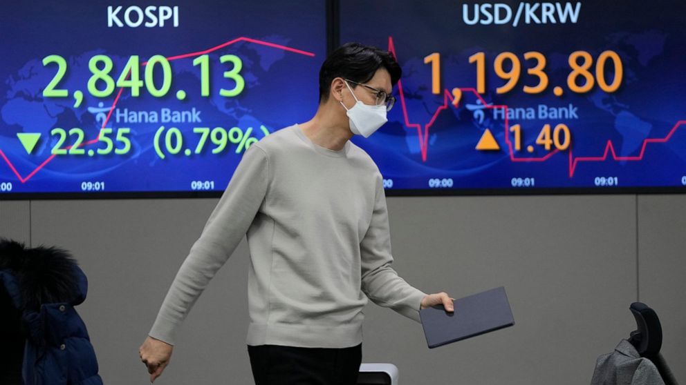 The S&P/ASX 200 in Sydney dropped 2.3% to 7,175.80. South Korea’s Kospi slid 1.1% to 2,830.82. Thailand’s benchmark fell 0.3%.