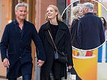 They walked hand in hand and kissed several times. Miss Silversand was dressed casually in black trousers, trainers and a long coat.