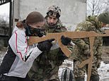 That’s hardly going to terrify Putin! Ukrainian civilians train with WOODEN assault rifles in bizarre defence exercises as fears grow of Russian invasion