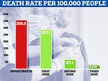 The most vulnerable over-90s saw an 89 per cent fall in risk after getting a booster, with death rates falling from 3,237.1 per 100,000 in the unvaccinated to 343.2 per 100,000 in the triple-jabbed.