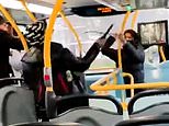 This is the terrifying moment two teenagers fight with a knife and what appears to be a sword in front of horrified passengers on a bus in south London.