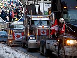 The truckers’ ‘Freedom convoy’ has parked itself in downtown Ottawa for more than a week, but officially started across other parts of Canada on January 22. Pictured: A truck convoy in downtown Toronto this weekend