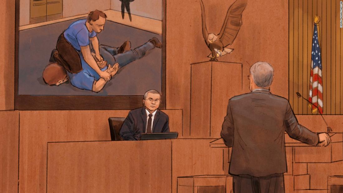 Paule showed the jury several photographs from Thao’s time in the police academy that pictured instructors using their knees to subdue and arrest subjects during training exercises.