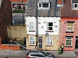 Police have cordoned off a house in Leeds (pictured) where a toddler fell from a first floor window after climbing over the headboard of its parents bed in the middle of the night