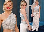 Sienna Miller dazzles in a beaded one-shoulder gown with cut out detailing as she makes a glamorous arrival at the Vanity Fair Oscars’ afterparty
