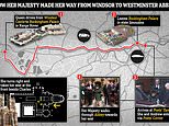 How the Queen left Windsor in Land Rover before swapping to her state limousine at Buckingham Palace