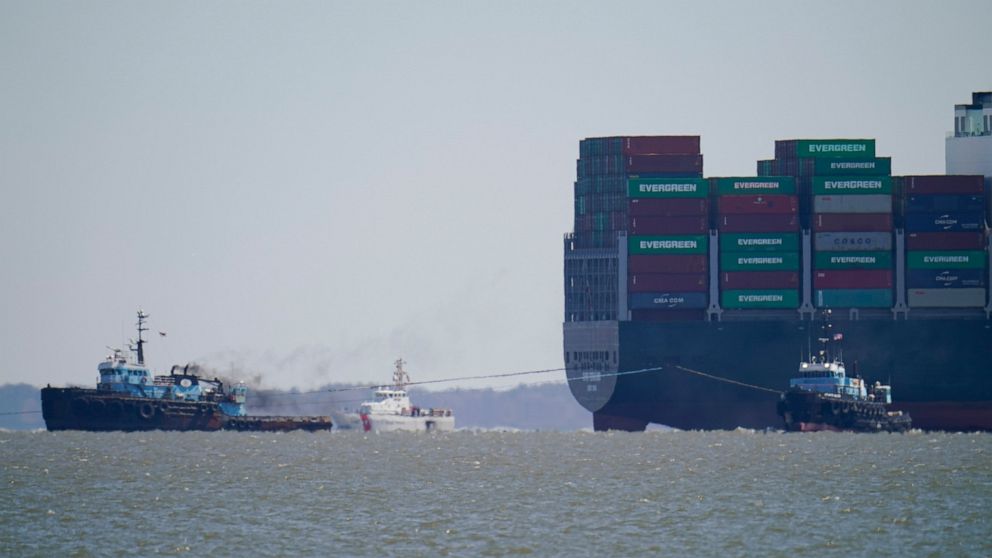 The more than 1,000-foot (305-meter) ship operated by Taiwan-based Evergreen Marine Corp. was headed from the Port of Baltimore to Norfolk, Virginia, on March 13 when it ran aground north of the Chesapeake Bay Bridge, the U.S. Coast Guard said. Officials have said there were no reports of injuries, damage or pollution.