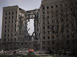 Even as negotiators from the two sides assembled in Istanbul, Putin’s forces hit an oil depot in western Ukraine late Monday and blasted a gaping hole Tuesday morning in a government administration building in Mykolaiv (pictured)