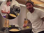 We’re flippin’ over it! David Beckham and daughter Harper posted pictures of themselves making pancakes a day after burglar ‘shimmied up neighbour’s scaffolding’ to launch raid on family’s £31m London mansion while they were home