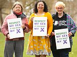 ‘We are not afraid to be called women’: Gender-critical activists chant ‘respect my sex if you want my X’ in London protest as they urge politicians to protect single sex services and spaces