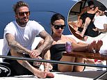 David Beckham cosies up to wife Victoria as they lounge on £5million superyacht with their kids