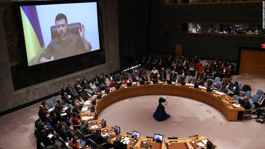 The Ukrainian president questioned the very mandate of the Security Council during emotionally charged speech