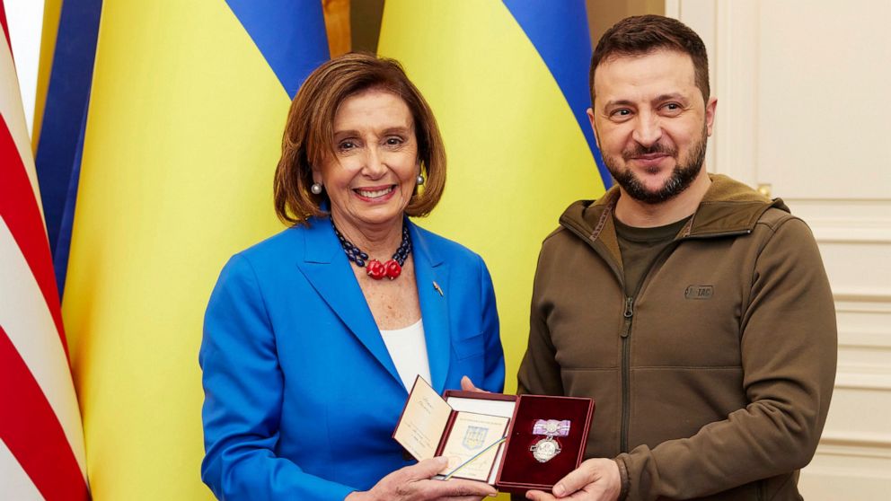 This story was corrected to show that Pelosi is second in line to the presidency, not third, and corrects the spelling of the Ukrainian president’s first name to Volodymyr.
