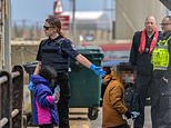 A UK border force official directs two children with water bottles in Dover (pictured today)