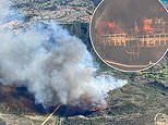 Smoke is seen rising from the Coastal Fire which ignited near a water treatment facility between Laguna Niguel and Laguna Beach at 2.44pm local time
