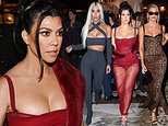 Kourtney Kardashian looks sensational in a sheer red dress as she steps out for dinner