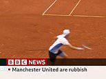 While reports from the tennis action at the French Open were being shown on the screen, the words ‘Manchester United are rubbish’ appeared at the bottom of the screen.