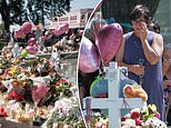 Crowds of mourners embrace and comfort each other at memorial service close to site of Texas shooting where gunman massacred 19 children and two teachers