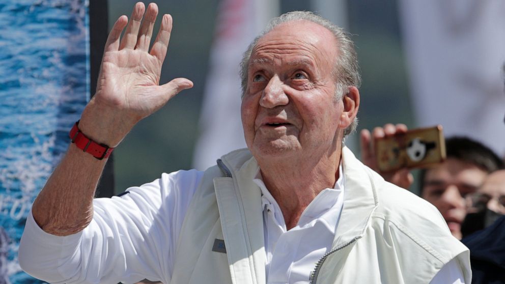 FILE – Spain’s former King Juan Carlos waves before a reception at a nautical club prior to a yachting event in Sanxenxo, northwestern Spain, on, May 20, 2022. Spain’s former king has decided to postpone a second visit home since he established residence abroad after his reputation was tarnished by financial scandal, Spanish news agency EFE reported Tuesday, June 7, 2022. (AP Photo/Lalo R. Villar, File)