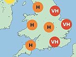 Southern and eastern England will face ‘medium’ pollen counts today, before it will be ‘very high’ by tomorrow and then across most of England by Friday. It will be ‘low’ in Scotland, ‘medium’ in Northern Ireland and ‘high’ in Wales.